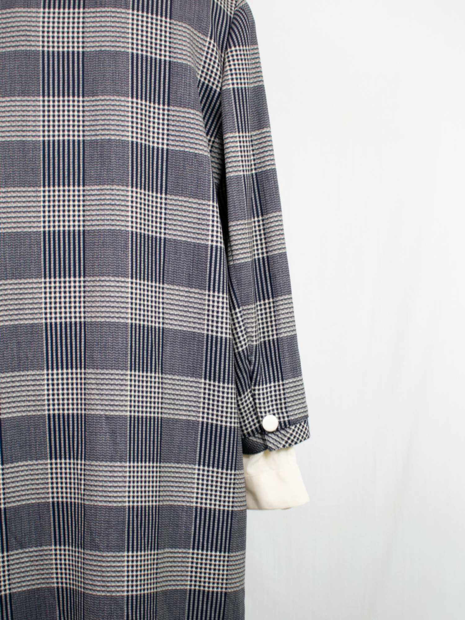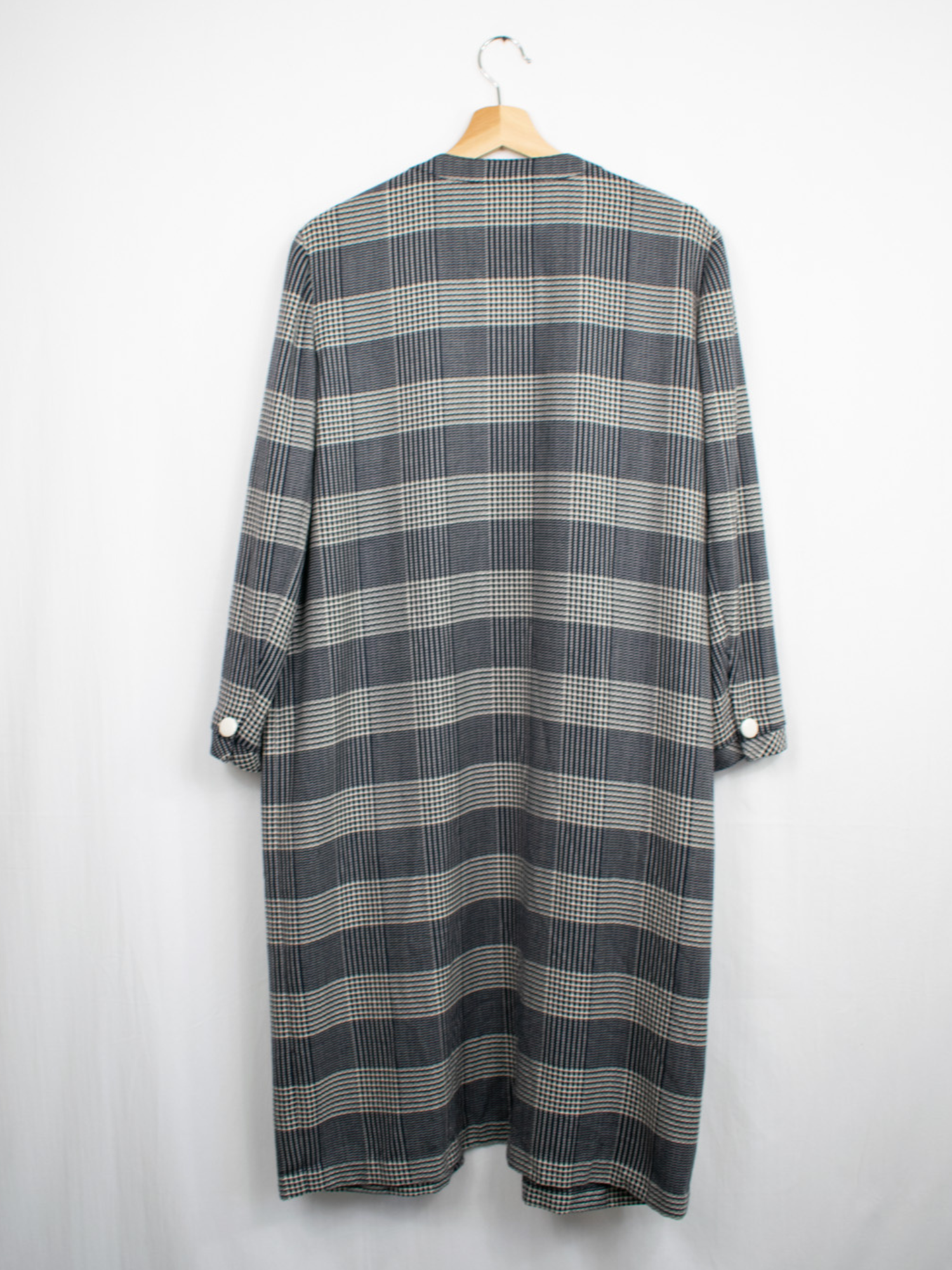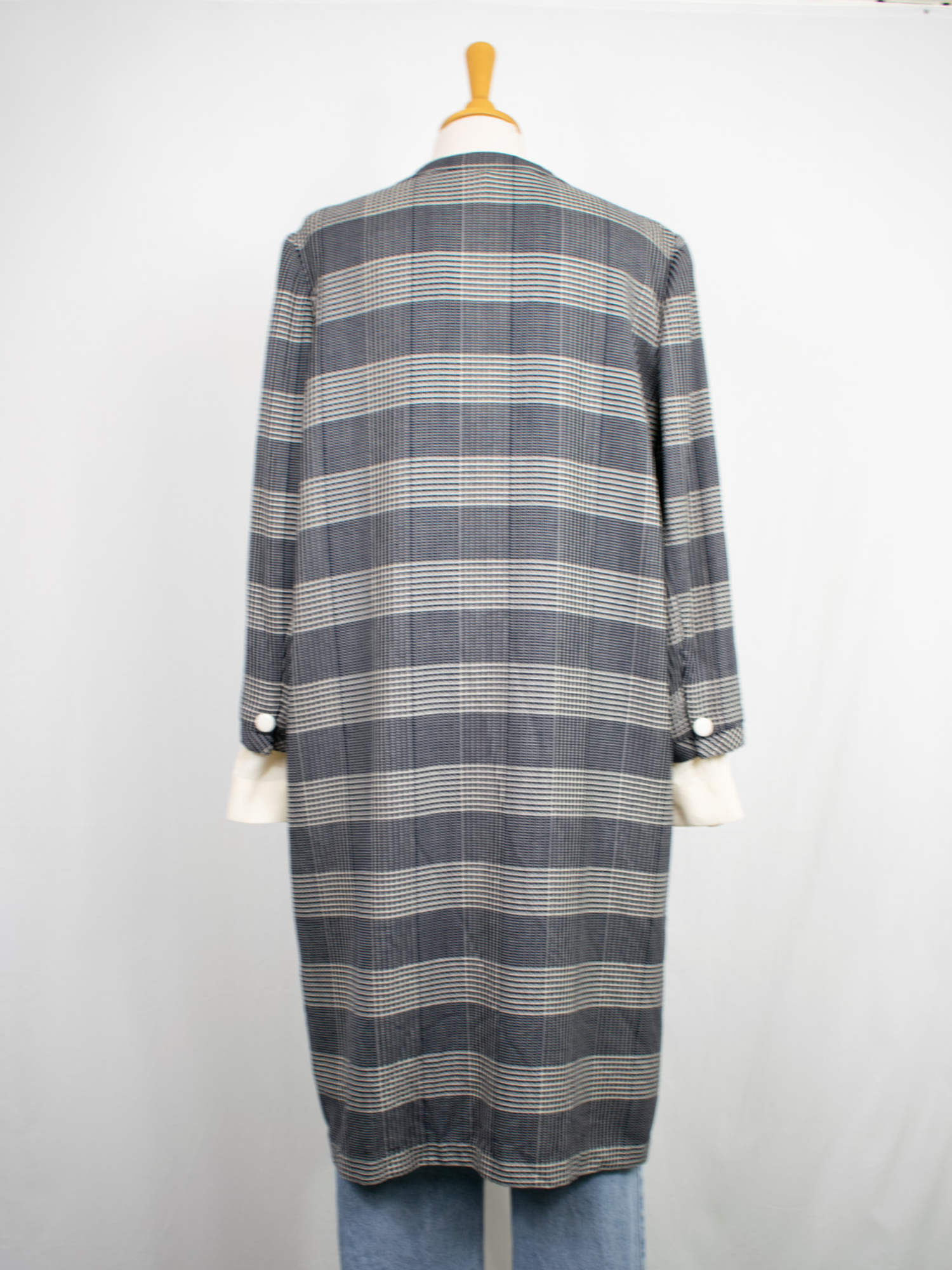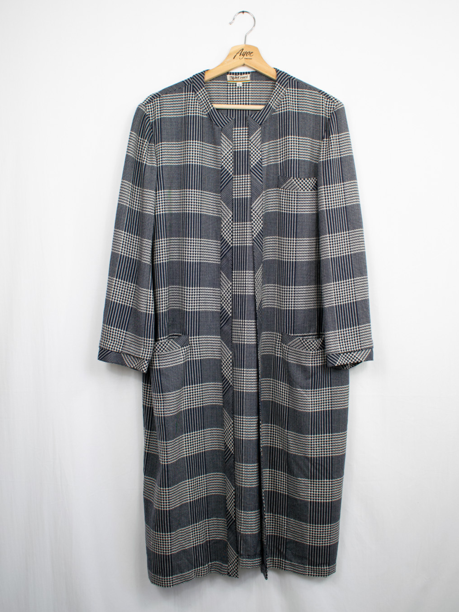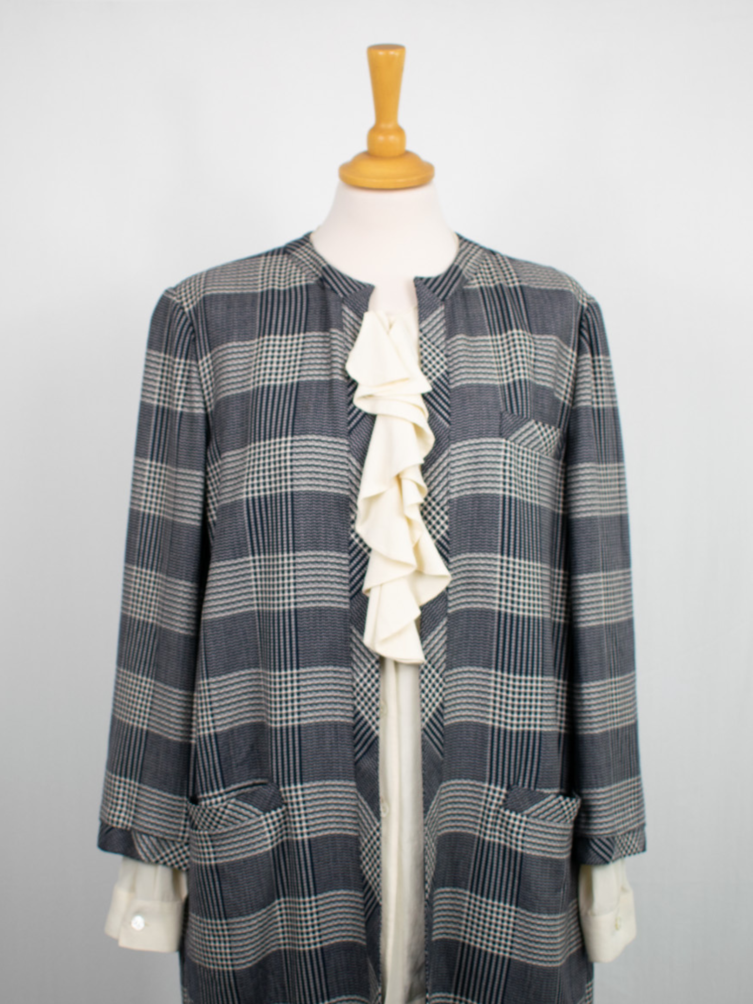 Denne fine navy blå & hvid ternet blazer/cardigan er med trekvart ærme, den er i fin let vævet italiensk lana uld.