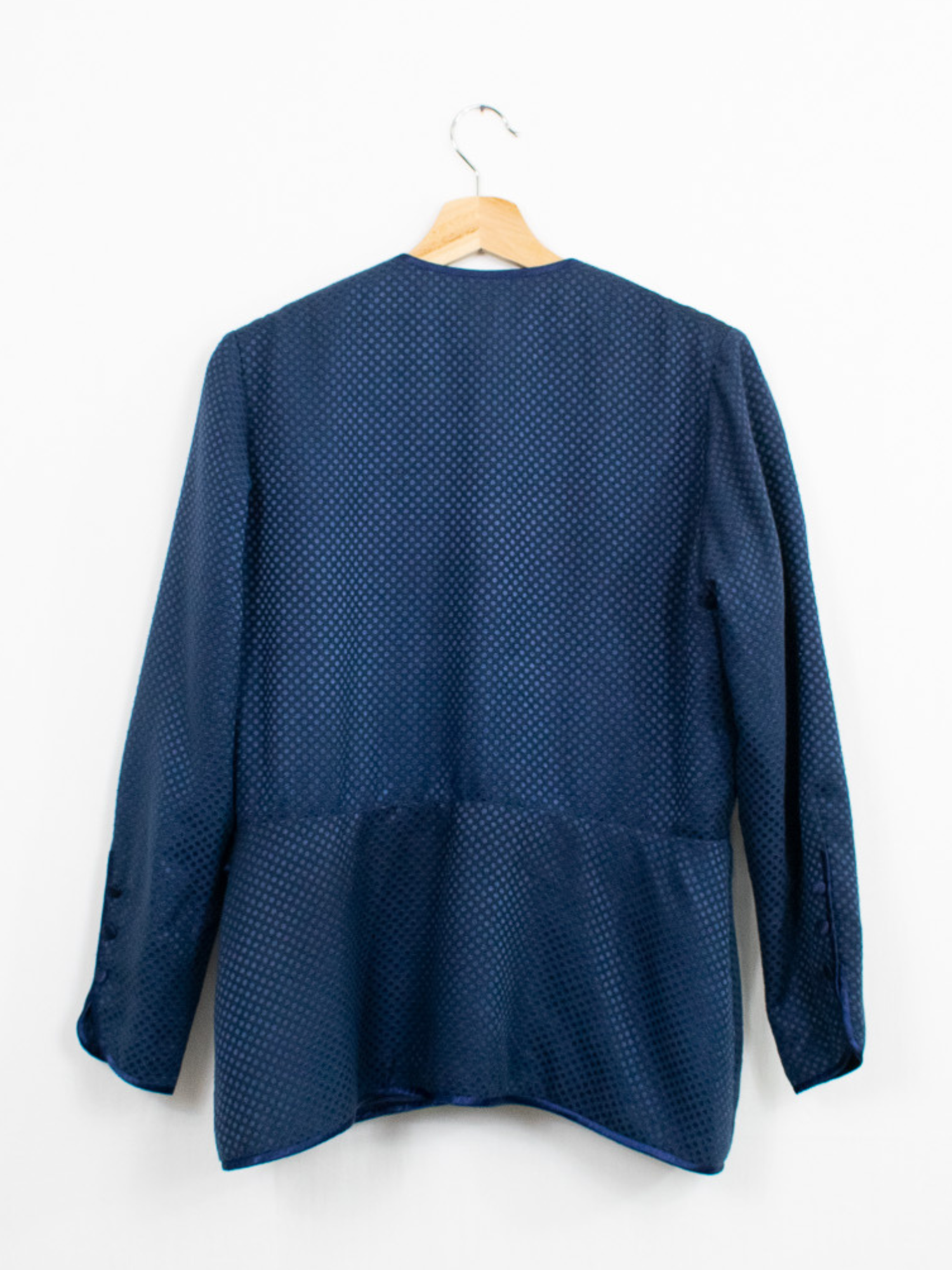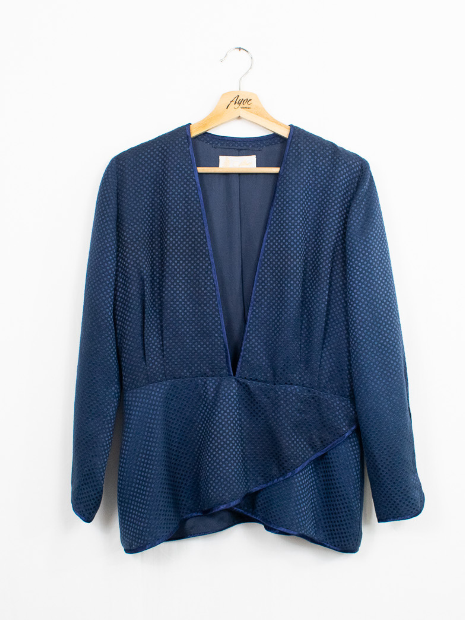 Denne smukke skjorte/blazer er med langt ærme, den har en dyb V udskæring og en form for slå om lukning.